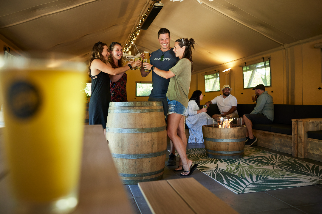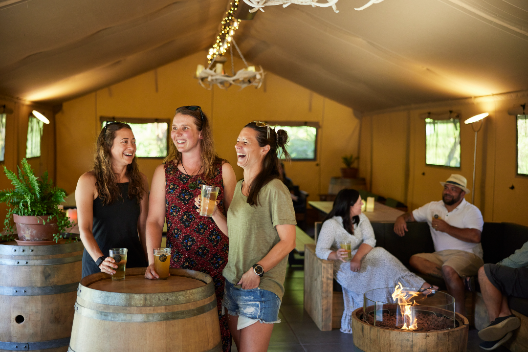 BaseCamp is a luxe all-weather safari tent venue and bar located at Secret Spot Hot Tubs. Situated on the edge of the Whakarewarewa Forest, BaseCamp can seat up to 70 people indoors with a range of comfortable couches and picnic tables.