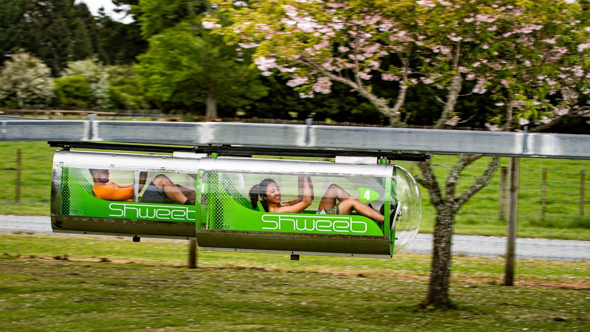 The Shweeb Racer is the only one of its kind in the world and may just be Rotorua’s most innovative ride. Suspended from an overhead monorail and equipped with electronic pedal assistance, racing these aerodynamic pods gives you the chance to compete one-on-one with family, friends or even the clock.